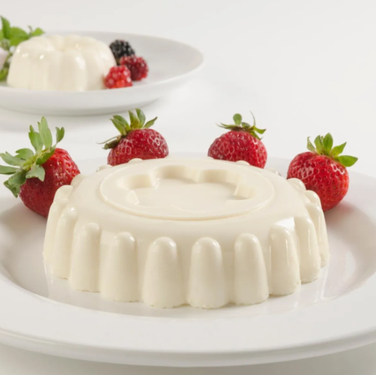5. Cuando haya cuajado, desmoldamos la gelatina de yogurt y la servimos. Podemos presentar la gelatina de yogurt con frutas añadiendo pedazos de varias o de una sola.