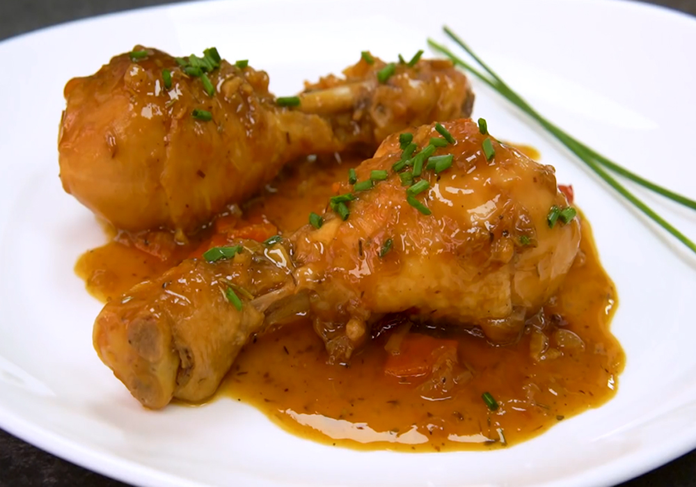 4. Echa a todos los ingredientes los muslos de pollo y deja cocer con la olla tapada a fuego medio 45 minutos.
