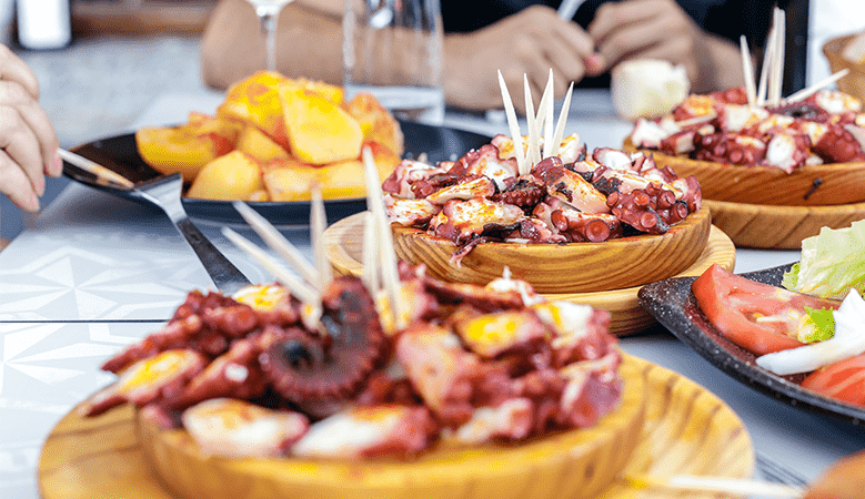 Pulpo á feira. Uno de los platos estrella de la gastronomía gallega que no puede faltar en cualquier imprescindible. Su secreto está en la calidad del producto y en la sencillez de su elaboración que solo necesita: pulpo, sal, aceite y pimentón. El mejor es el que se hace en Carballiño, que curiosamente está en el interior. No puedes visitar Galicia y no probar esta delicia.