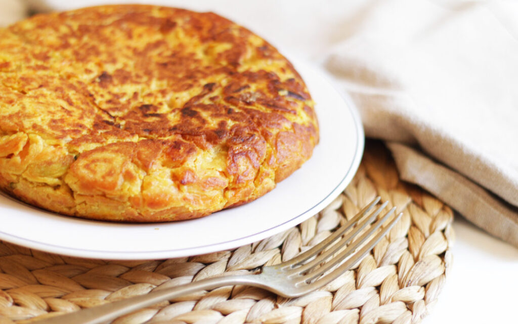 - Calentar a fuego medio una sartén de 20 cm con 1 cucharada de aceite de oliva, añadir la mezcla y dejar cocinar unos 8-10 min por cada lado. Para darle la vuelta a la tortilla utilizar un plato con un poco de aceite y agua.