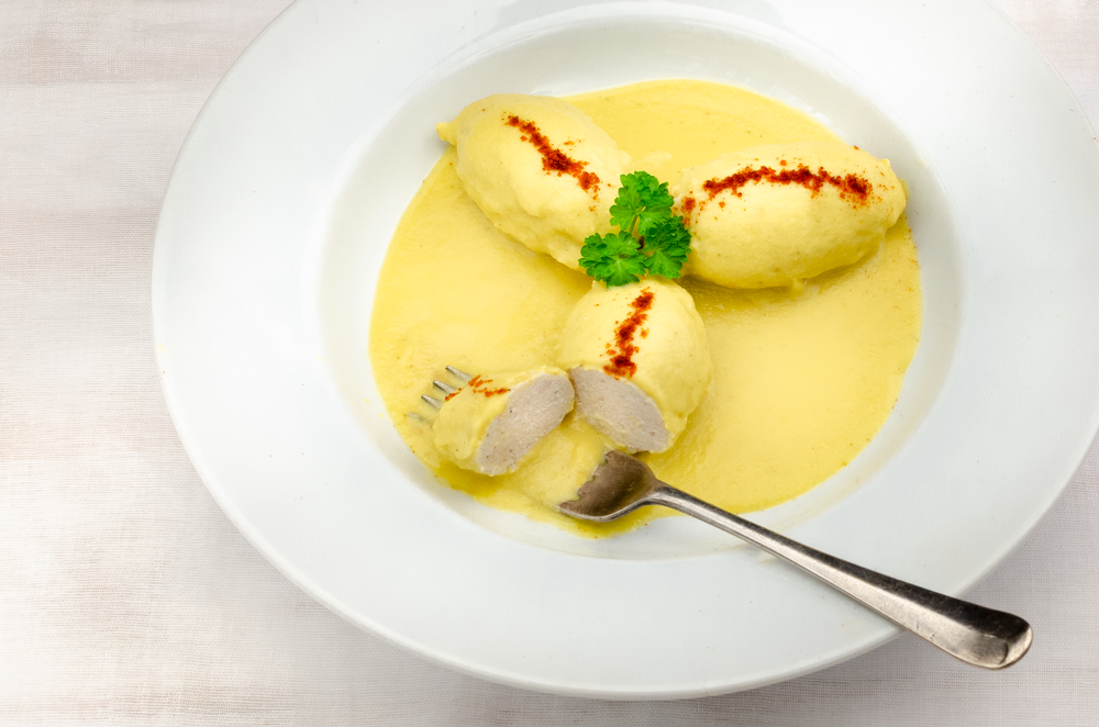 La quenelle es un plato típico de Francia que consiste en una masa hecha de harina, agua y mantequilla que se cuece antes de servirla acompañada de una salsa.