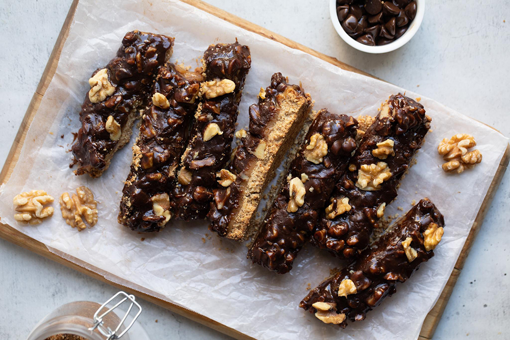 - Presione la masa en un molde para gelatina o en una tabla de cortar y córtela en 6 barras y sirva.