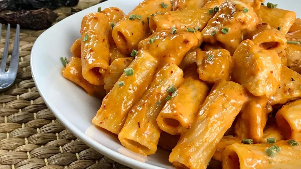 Los macarrones con pollo y salsa de tomate son una deliciosa receta que se prepara en un abrir y cerrar de ojos.
