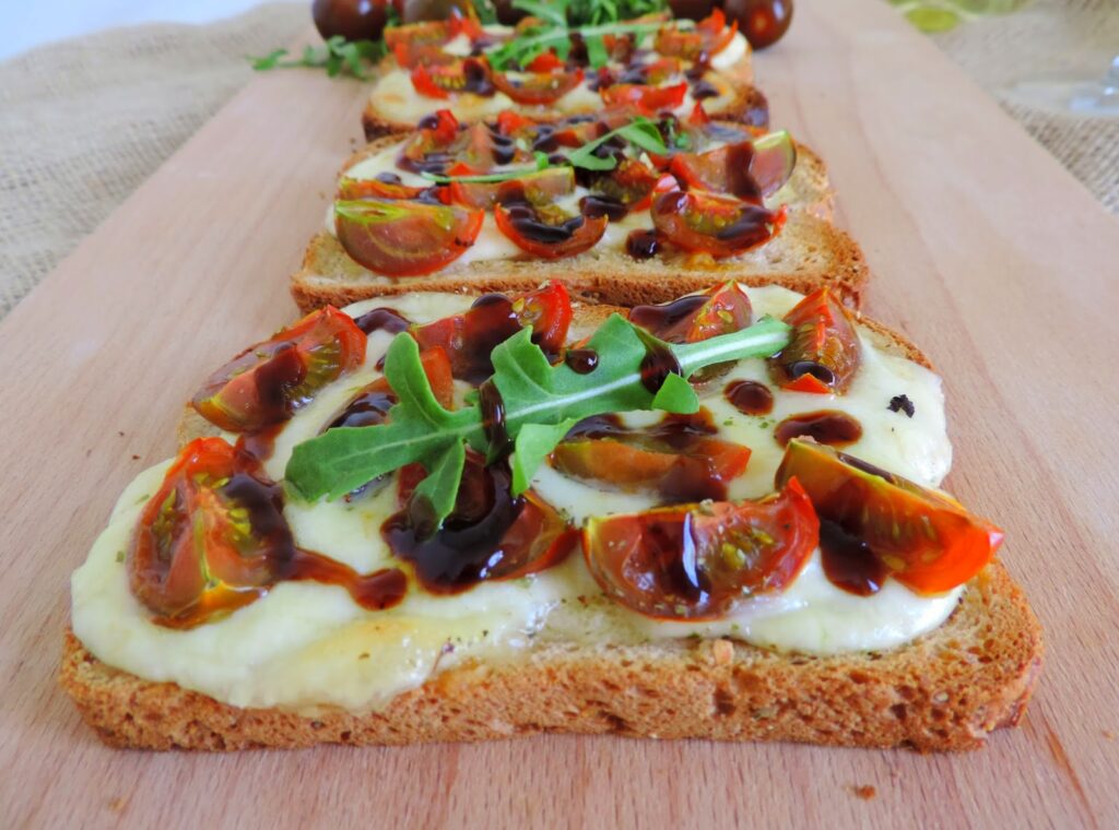 – Coloca las rodajas o los cubos de tomate sobre las tostadas. Luego, distribuye las perlas de mozzarella por encima. La mozzarella, con su textura suave y cremosa, combina perfectamente con el sabor fresco del tomate.