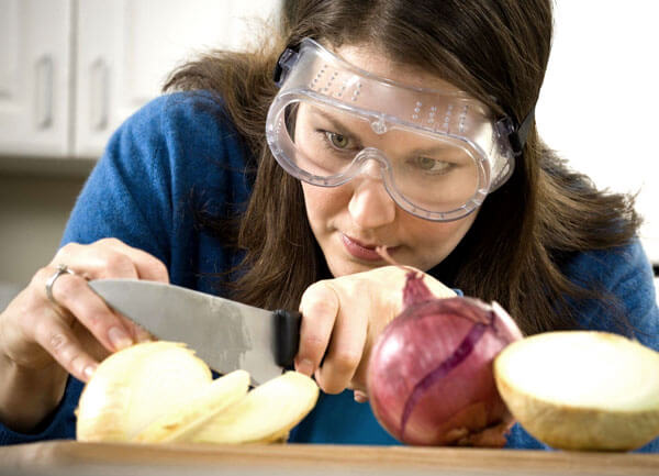 - Sumergir la cebolla en agua. Este método ayuda a disminuir los compuestos de azufre que son responsables del lagrimeo. Durante el corte, el agua actúa como una barrera que impide que el gas llegue a los ojos.