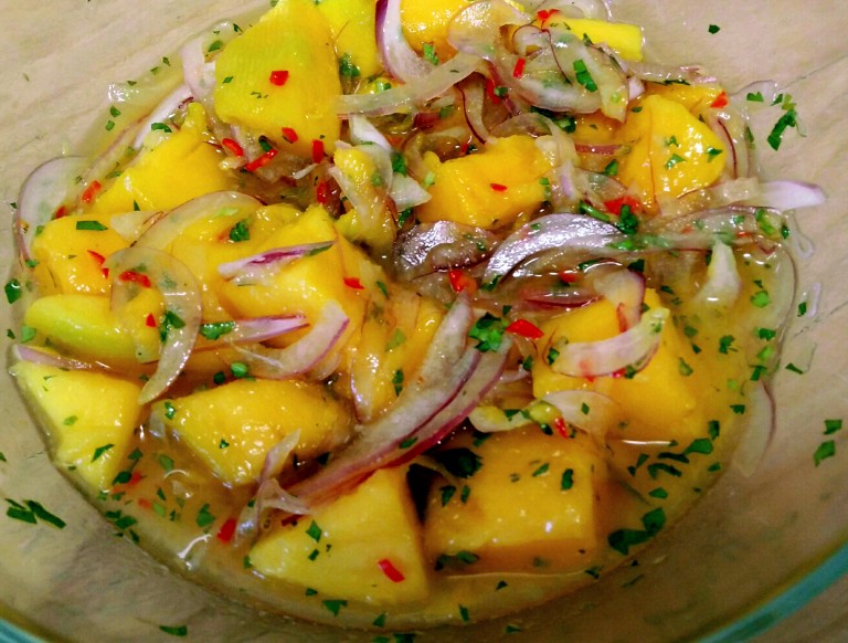 • 1 mango maduro, pelado y cortado en cubos pequeños