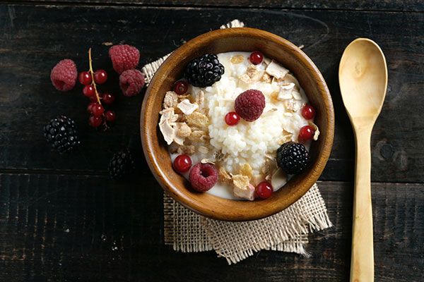 4. Podemos dejar que el arroz con leche se temple o incluso se enfríe totalmente, dejándolo de un día para otro antes de servirlo, según gel gusto de cada uno. Servimos el arroz con leche de avena en cuencos individuales acompañado de nuestro muesli preferido o granola casera y un puñado de frutos rojos, como arándanos y frambuesas. Podéis espolvorear por encima de manera opcional un poquito de canela molida.