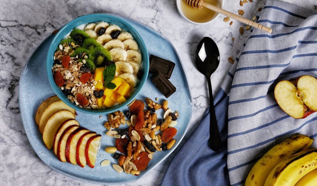 - ½ taza de frutas altas en fibra (frambuesas, moras o kiwis).