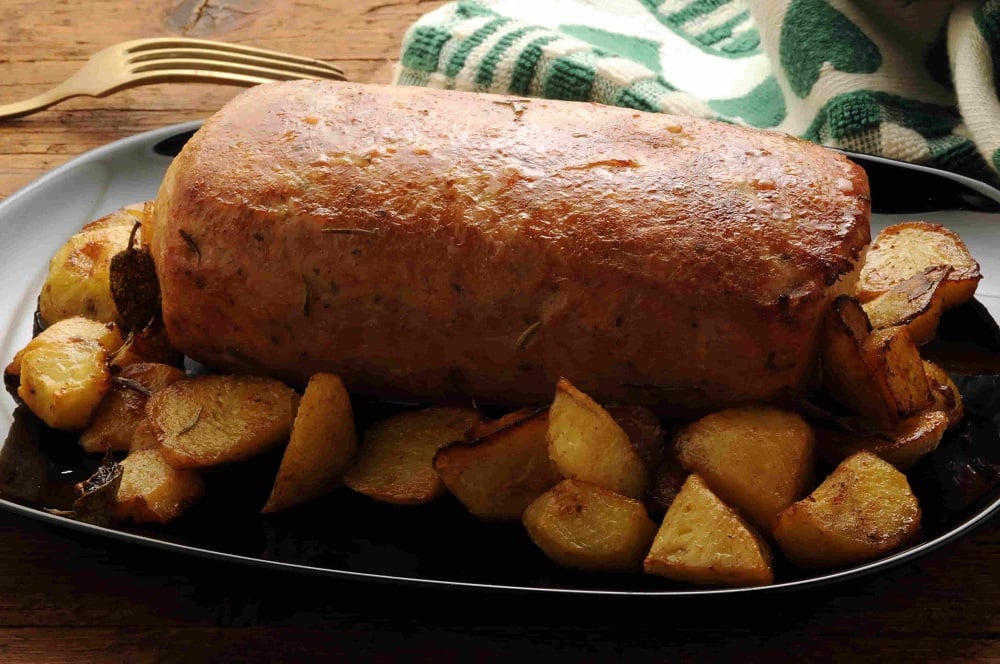 - Enrolla la carne como si fuera un cinnamon roll. Con mucho cuidado, trasládalo al molde sobre las papas, agrega 10 cc de aceite de oliva por encima y sal y pimienta al gusto. Hornea a 180°C durante 30 a 45 minutos. Puedes acompañar este plato con una ensalada verde fresca, como rúcula y lechuga, aderezada con vinagre balsámico.