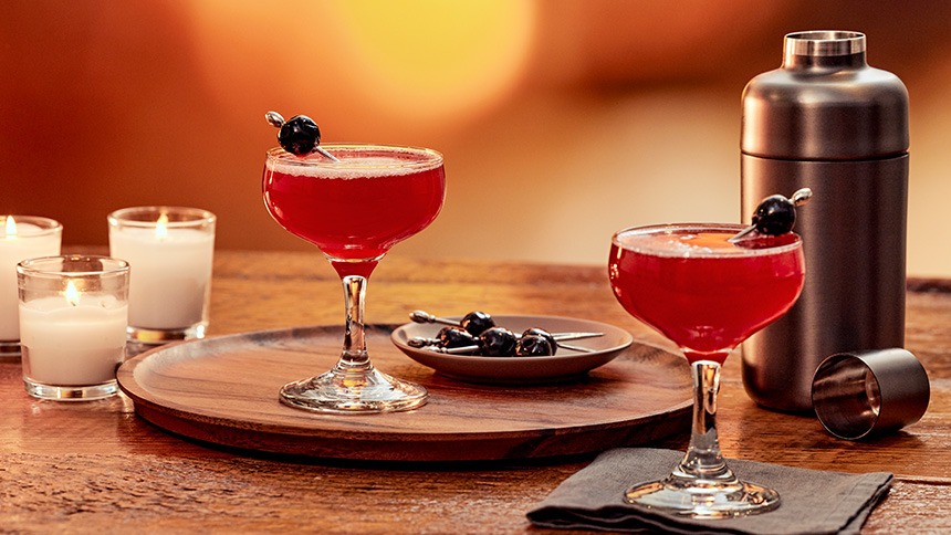 Se mezclan en una coctelera los zumos con el azúcar. Se añade el vino y el hielo y se agita bien. Se sirve en una copa de cóctel con el borde glaseado.