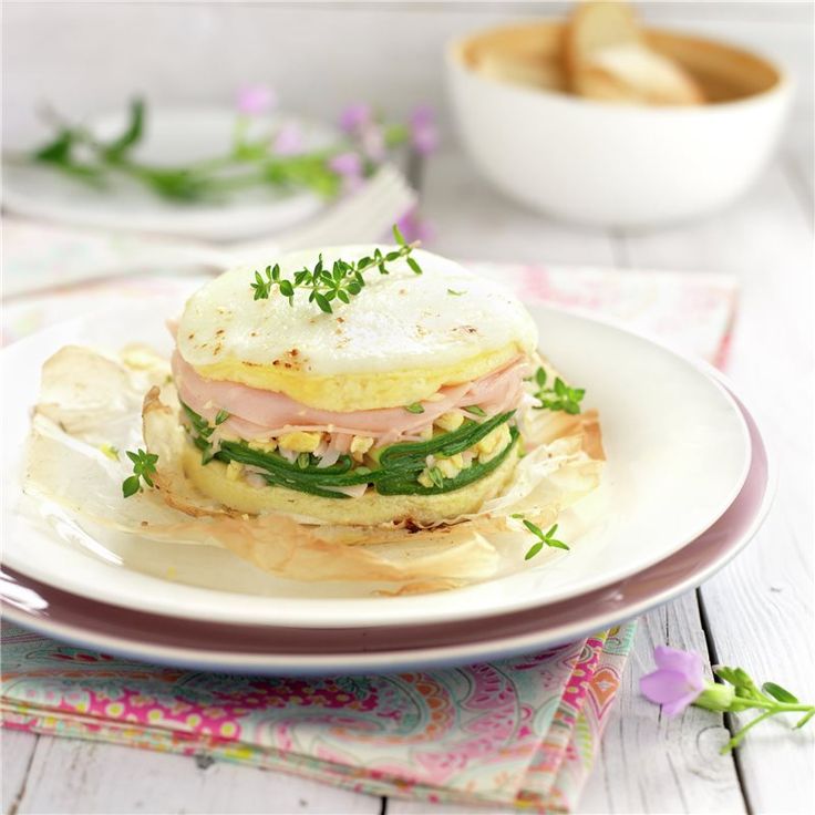 - Monta los milhojas con la ayuda del aro de cocina, alternando un círculo de tortilla, calabacín, una loncha de pavo y otra capa de tortilla.