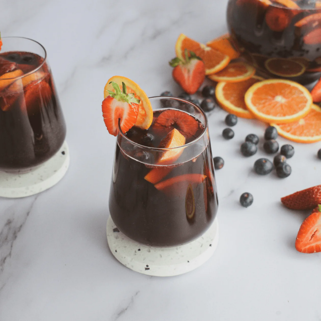 Un dulce y delicioso capricho de verano , las recetas de sangría son un clásico por algo. Solo necesitas una cantidad igual de vino tinto y brandy mezclados con zumo de naranja recién exprimido y azúcar granulada. Añade rodajas de naranja y manzana para un toque extra afrutado. También puedes añadir un poco de soda o ginger ale si prefieres una sangría con más burbujas.