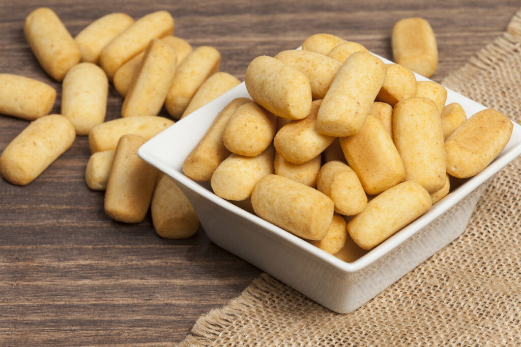 Para hacer achiras necesitas harina de maíz, agua, azúcar, mantequilla, sal y, opcionalmente, un toque de canela o clavo para aromatizar. La mezcla se bate hasta obtener una masa homogénea que se deja reposar 30 minutos.