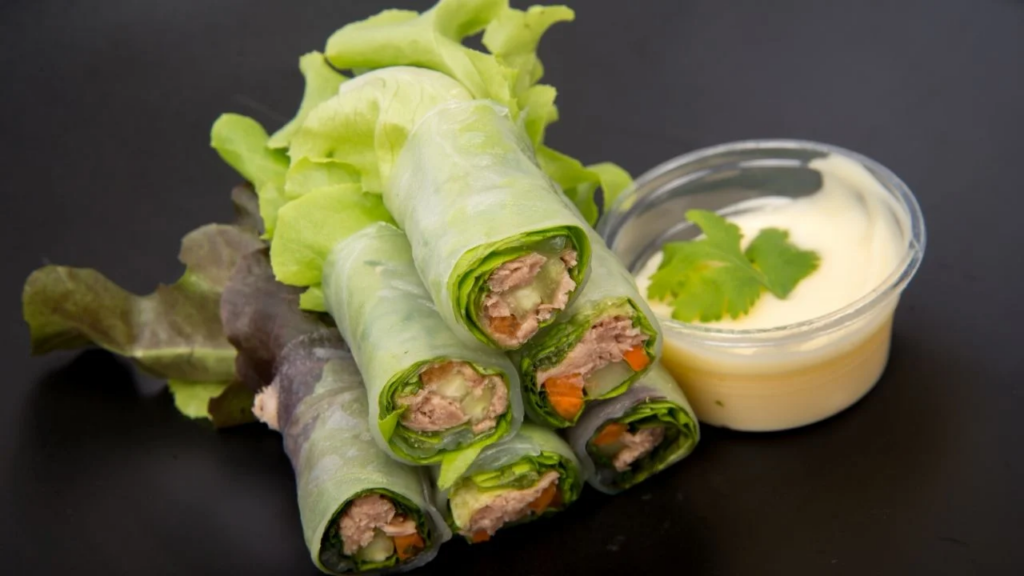 - Hojas enteras de lechuga romana lavadas y secas.