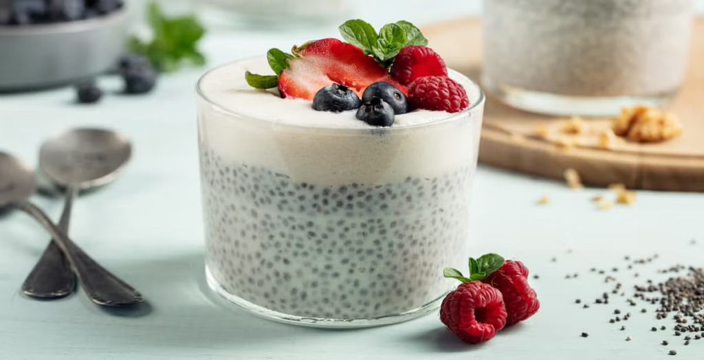 • Preparación: Mezcla 3 cucharadas de semillas de chía con una taza de yogur natural. Deja reposar en la nevera.