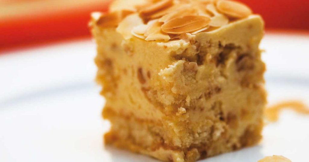 Una evolución sofisticada de la clásica marquesa. En lugar de chocolate tradicional, utiliza una crema de mantequilla o chantilly suave, intercalando capas de galletas humedecidas en leche con praliné de almendras.
